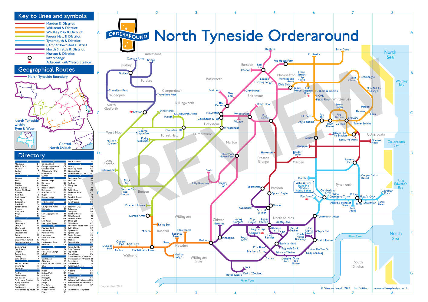 Created in 2019 by Steve Lovell this map shows all the pubs in North Tyneside at the time