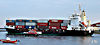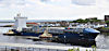 | Small container ships have been unloading for some time, but since the introduction of a second crane, larger vessels can be handled. (Then the original crane was removed) | |||||